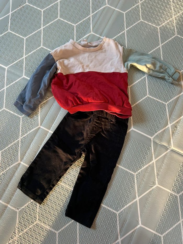 Ensemble bébé garçon: pull H&M 6-9 mois qui taille grand et pantalon kitchoun 12 mois #ensemblebebe12mois #ensemble12mois #bebe12mois #bebehm12mois