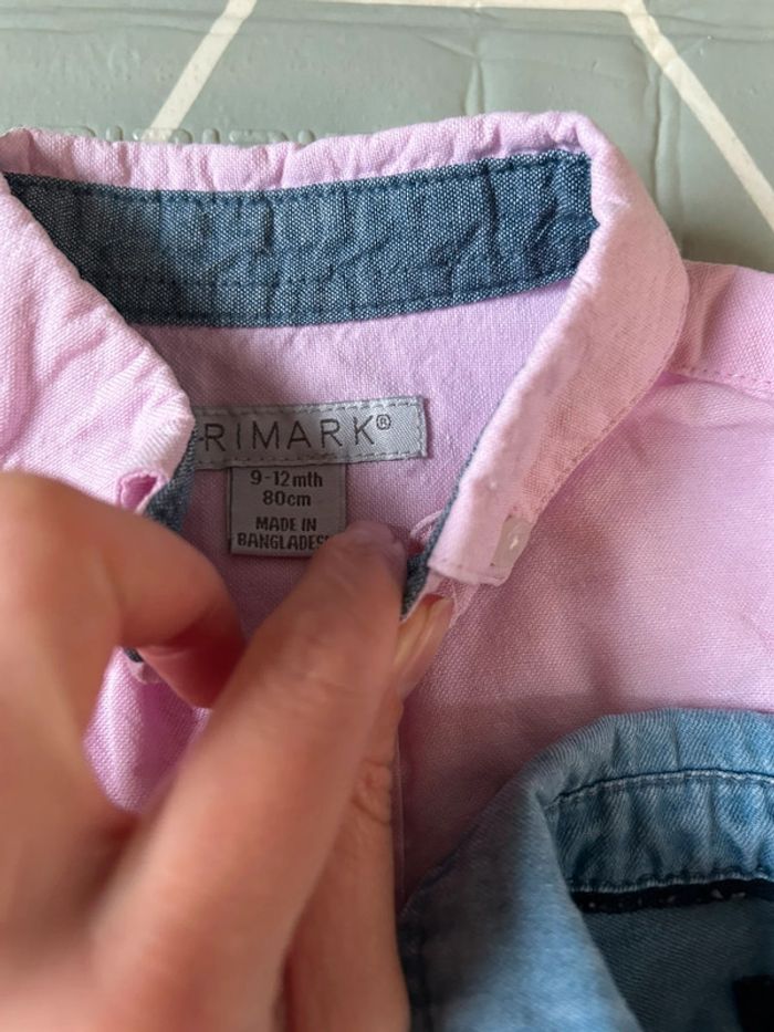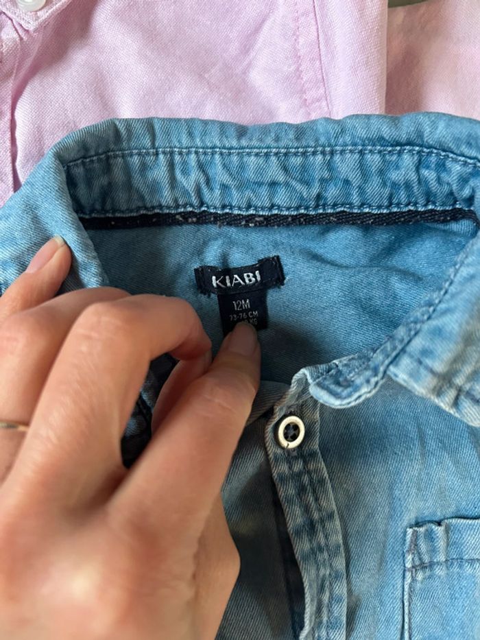 Lot 2 chemises bébé 12 mois: une Kiabi style Jean et une chemise rose Primark #lotchemises12mois #lotbebe12mois #chemise12mois #primark12mois #lotbebe12mois #kiabi12mois