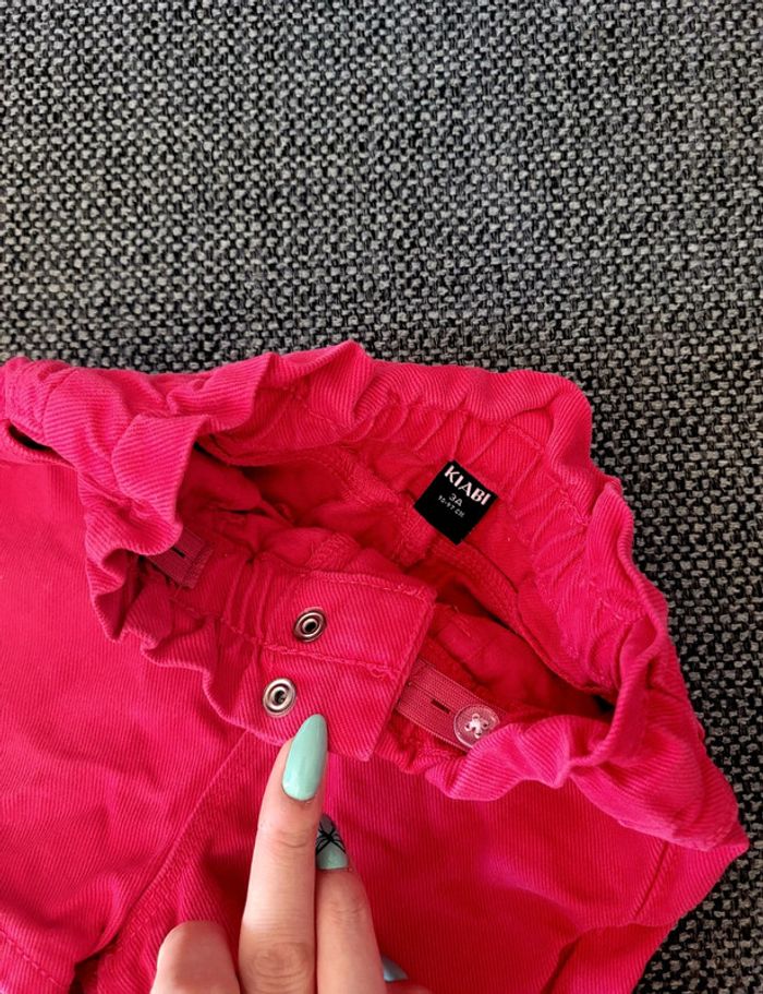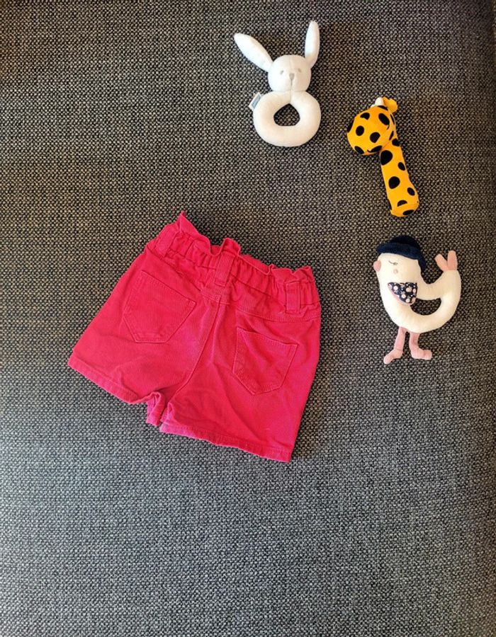 Short pour fille de taille 3 ans et de la marque Kiabi Coupe large paperbag Taille ajustable et élastiquée Tissu en jean souple de couleur rouge framboise Aucune tâche ni trou #mabi38780fille3ans