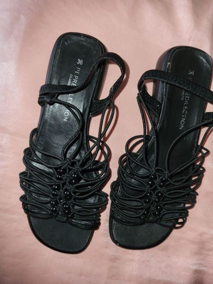 sandale noir d'été avec lacets élastique t 36 et perles très bon état