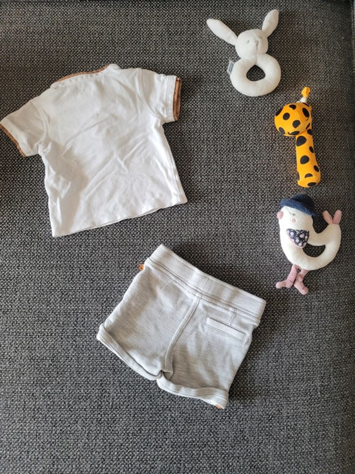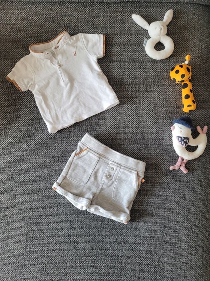 Ensemble pour garçon de taille 3 mois et de la marque Obaibi Composé d'un polo à manches courtes et d'un short assorti Idéal pour l'été Aucune tâche ni trou sauf pour le short qui a un petit trou à peine visible sur l'arrière (voir photos) #mabi38780garcon3mois