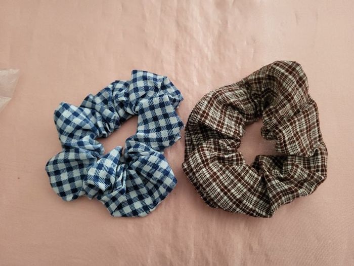 Lot 2 chouchou.un marron et bleu marine tissu vichy