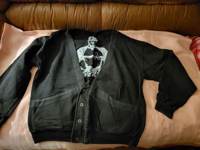 gilet noir , taille L homme, mixte ou t 44 femme, en coton, longueur 61 cm, larg poitrine 56 cm, 2 poches devant, noir et blanc , très bon état , noir comme photo 2-3, doublé intérieur coton , idéal pour le sport