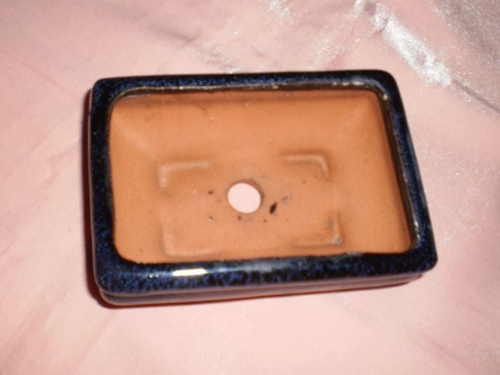 pot à bonzaï en terre cuite, émaillé bleu dimension 14 x 10 cm de large x 6,5 cm de hauteur