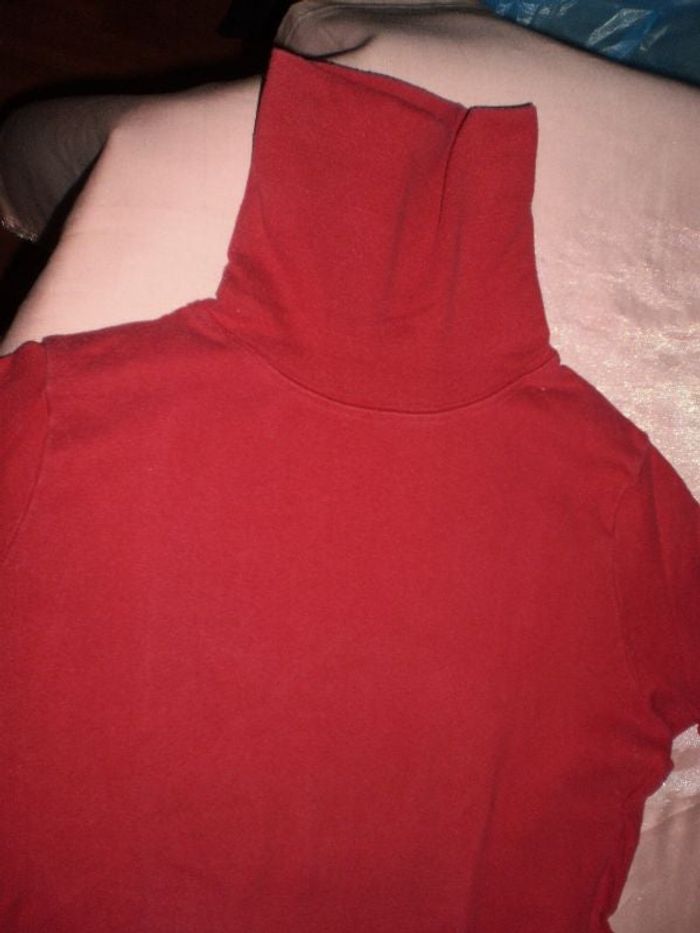 sous pull rouge très bon état, long 56cm , larg poitrine 45 cm sans tirer, extensible tout coton épais, couleur comme photo 1-2