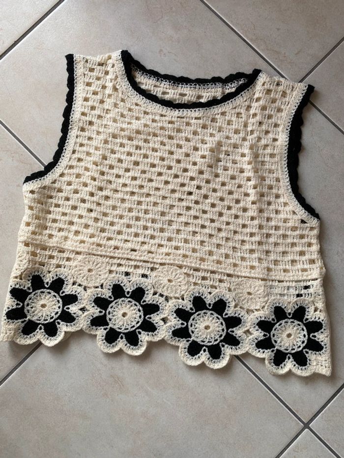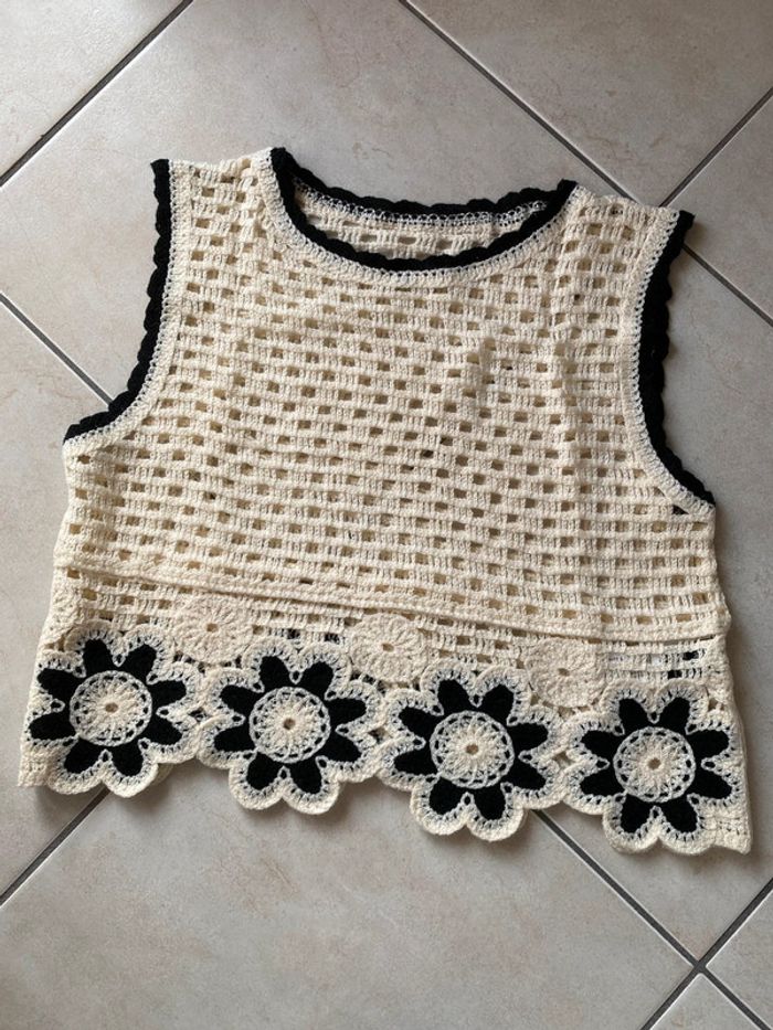 Débardeur top haut crochet crème noir 36 - photo numéro 2