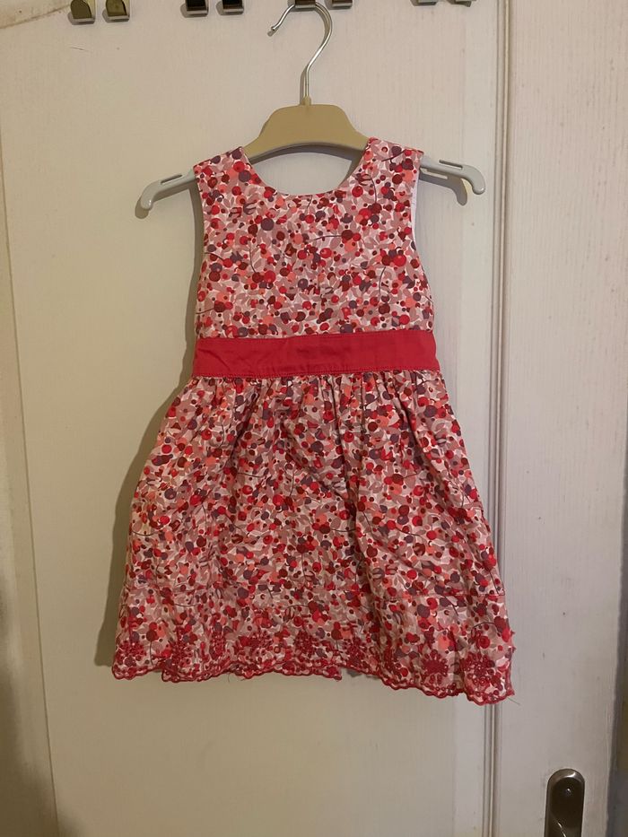 Vends robe rose à motifs en très bon état. Taille 18mois