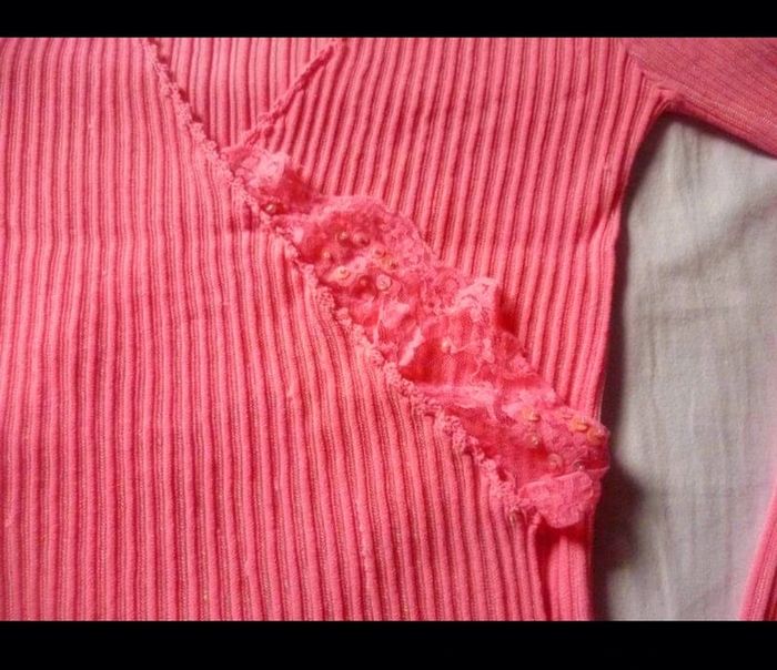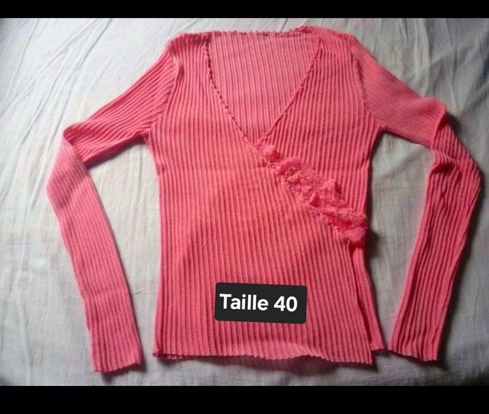 Cache Coeur en 40 , couleur rose Avec de la jolie dentelle sur un coté Idéal avec un jean noir En excellent état Tout mes vêtements Femme en taille 40/ 42 : #delphinedsxfemme40