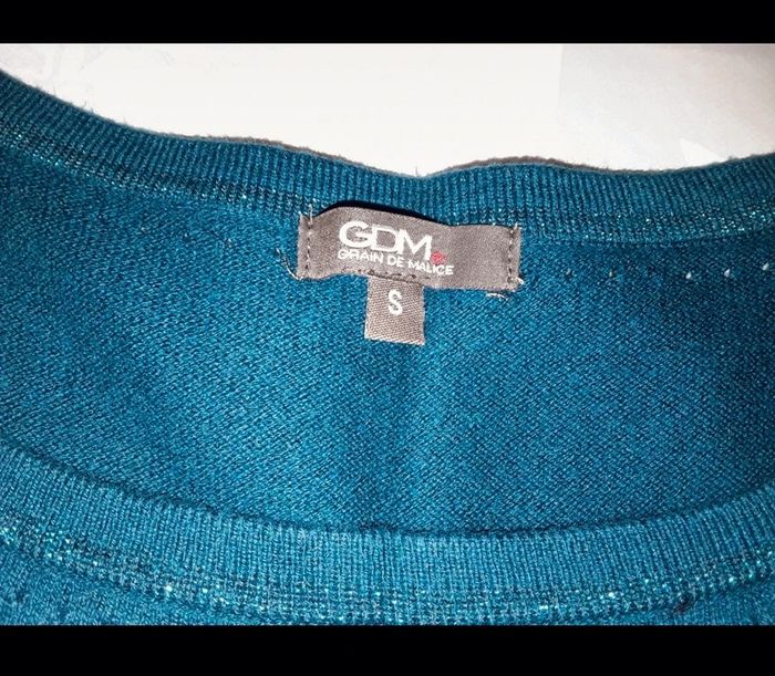 Robe en Taille S soit en 36 , de la marque : GDM ( Grain De Malice ) C'est une robe d'hiver elle est brillante au niveau du col et des manches À manches courtes, parfaite avec un sous pull De couleur bleu vert, très jolie Perso, je mettai une petite ceinture pas trop serrée, avec collant noir, sous pull et un joli collier de type sautoir 😊 En excellent état Tous mes vêtements Femme en taille S : #delphinedsxfemme36 En taille M : #delphinedsxfemme38