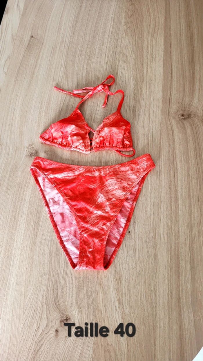 Superbe Maillot de Bain 2 pièces en 40 soit taille L de chez JENNYFER BEACH De couleur rouge / corail, le fond du bas du maillot de bain est doublé En très bon état Tous mes vêtements Femme en 40 : #delphinedsxfemme40