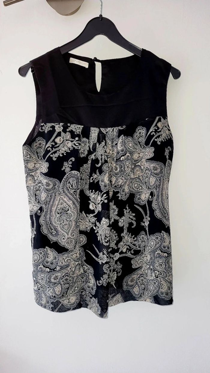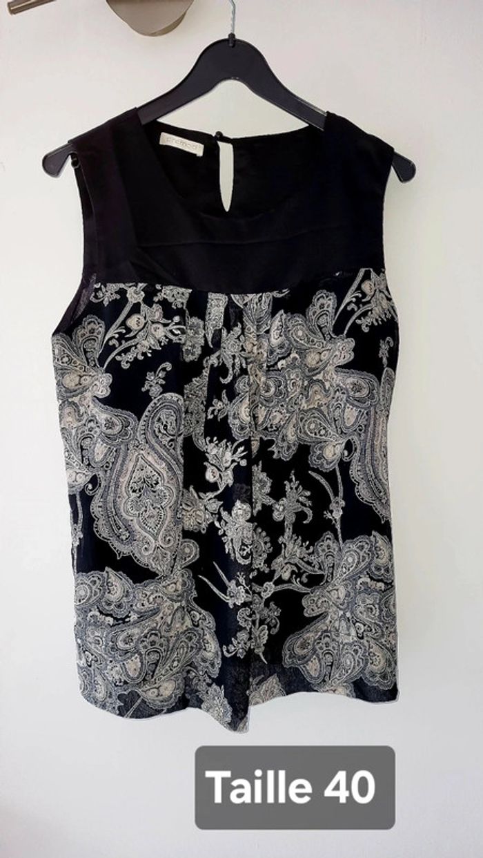 Très joli débardeur / tunique en 40 soit en L , fluide avec doublure , noir avec motifs gris blanc , NEUF sans étiquette , juste laver 1 fois après l'achat , de chez Promod Tous mes vêtements Femmes en 40 : #delphinedsxfemme40