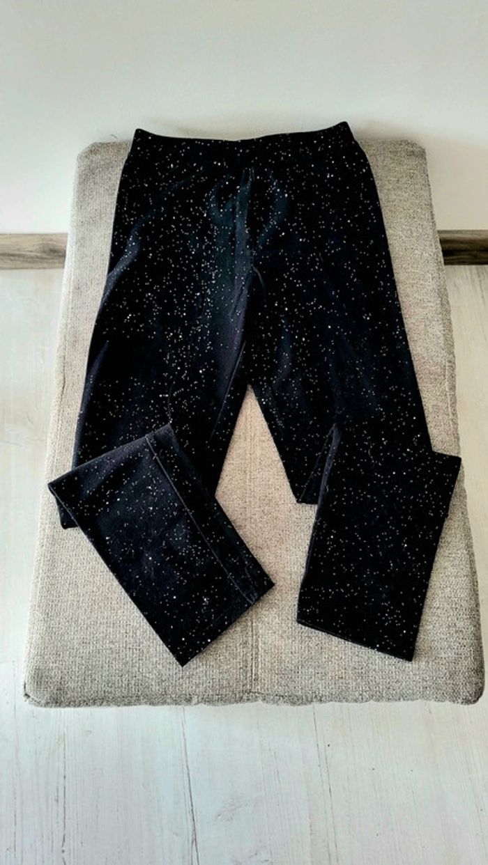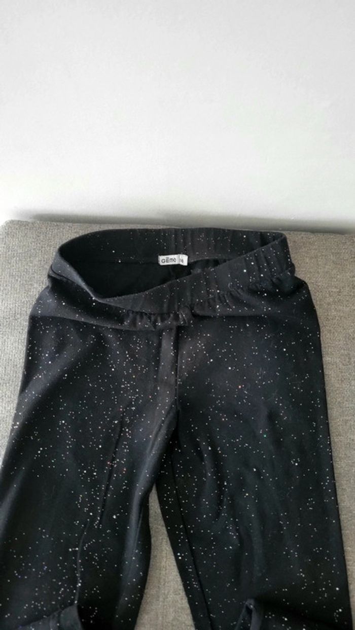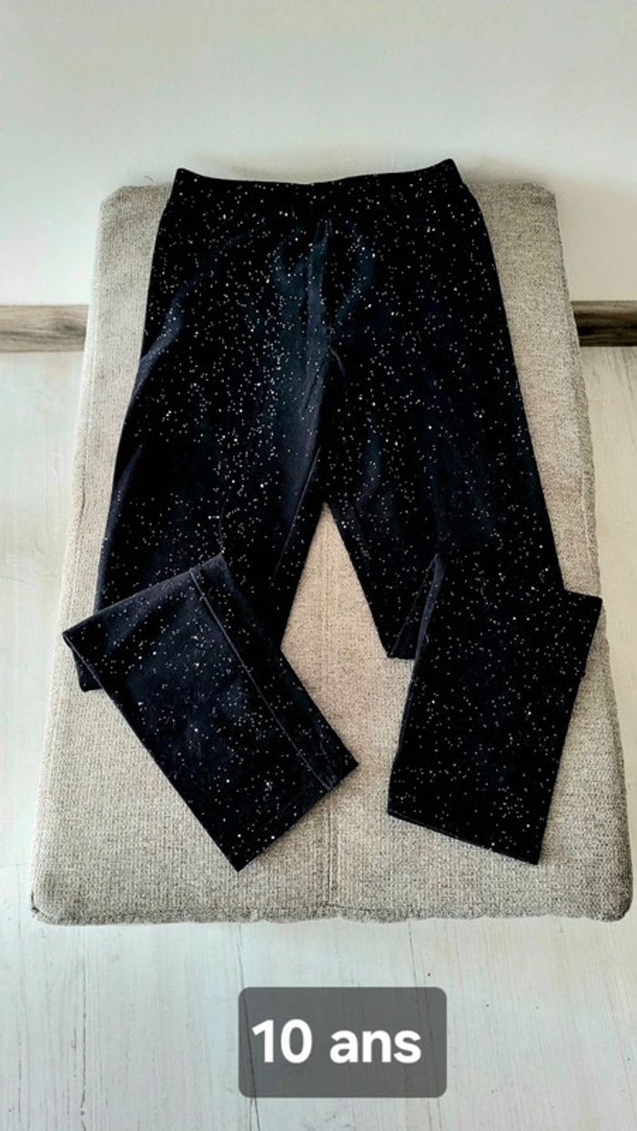 Pantalon en 10 ans , noir avec du brillant, taille élastiquée, super agréable, bonne tenue , en excellent état Tous mes vêtements Fille en 10 ans : #delphinedsxfille10ans
