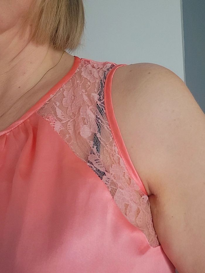 Débardeur / top d'été en 42 soit XL Avec dentelle sur les épaules De couleur saumon / corail Matière fluide, pas besoin de repassage En excellent état Tous mes vêtements Femmes en 42 : #delphinedsxfemme42