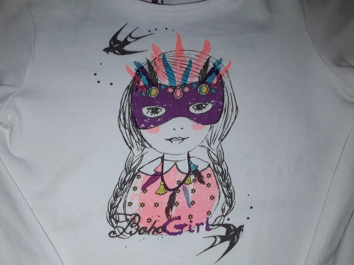 🔮 Tee Shirt pour fille en 8 ans 🔮 Marque : ORCHESTRA Avec, comme motif , une femme avec un masque de carnaval sur les yeux De couleur blanc À longues manches En très bon état Tous mes vêtements Fille en 8 ans : #delphinedsxfille8ans