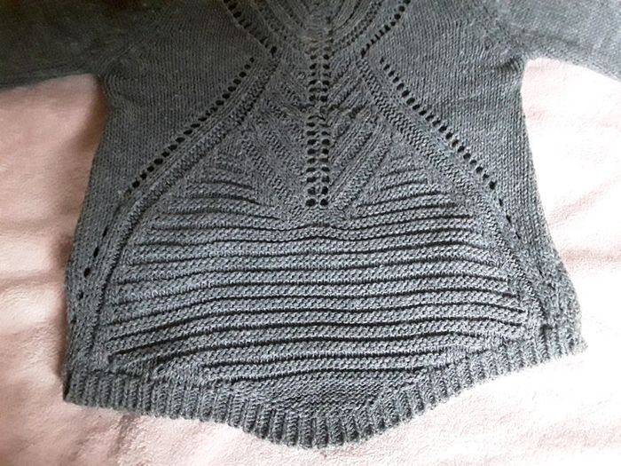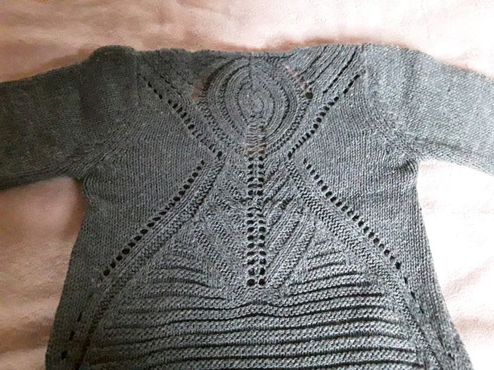 🎀🎀 Pull pour fille en 4 ans 🎀🎀 Particularité : il est ajouré devant et dos, ce qui lui donne un look très stylé Avec son col V Il est très beau porté, surtout dans le dos, une vraie beauté L'arrière se termine en pointe De couleur gris vert En excellent état Tous mes vêtements Fille en 4 ans : #delphinedsxfille4ans