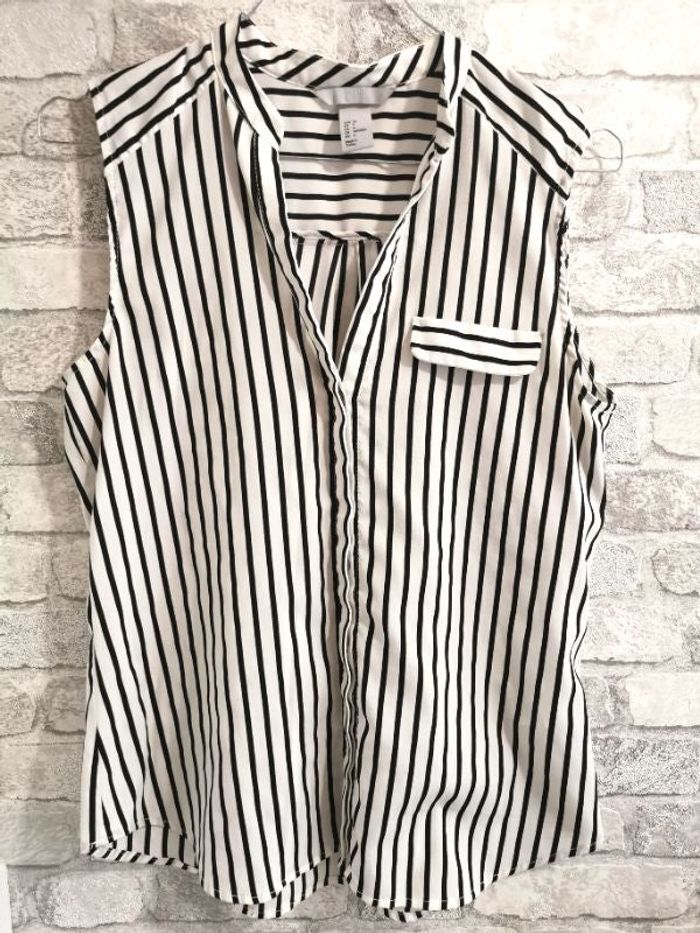 Chemise H&M pour femme taille XS/S. Blanche à rayures noires. Super légère et agréable à porter, idéal pour l'été