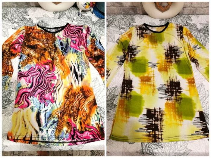 Très joli haut pour femme multicolore, tissu très agréable et confortable. Neuf sans étiquette. Taille 36. Lot de 2 articles