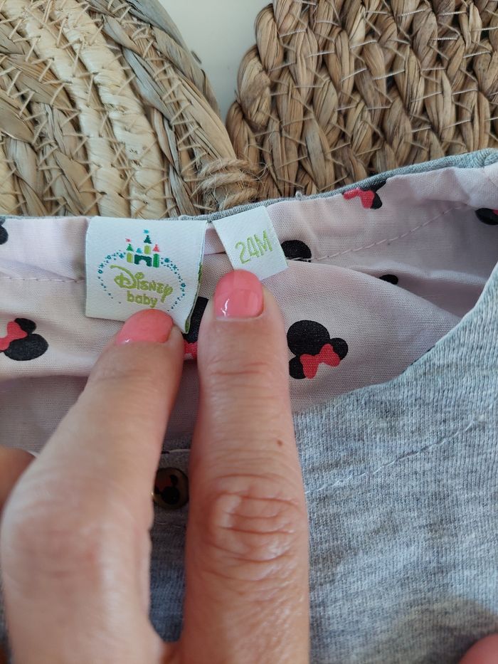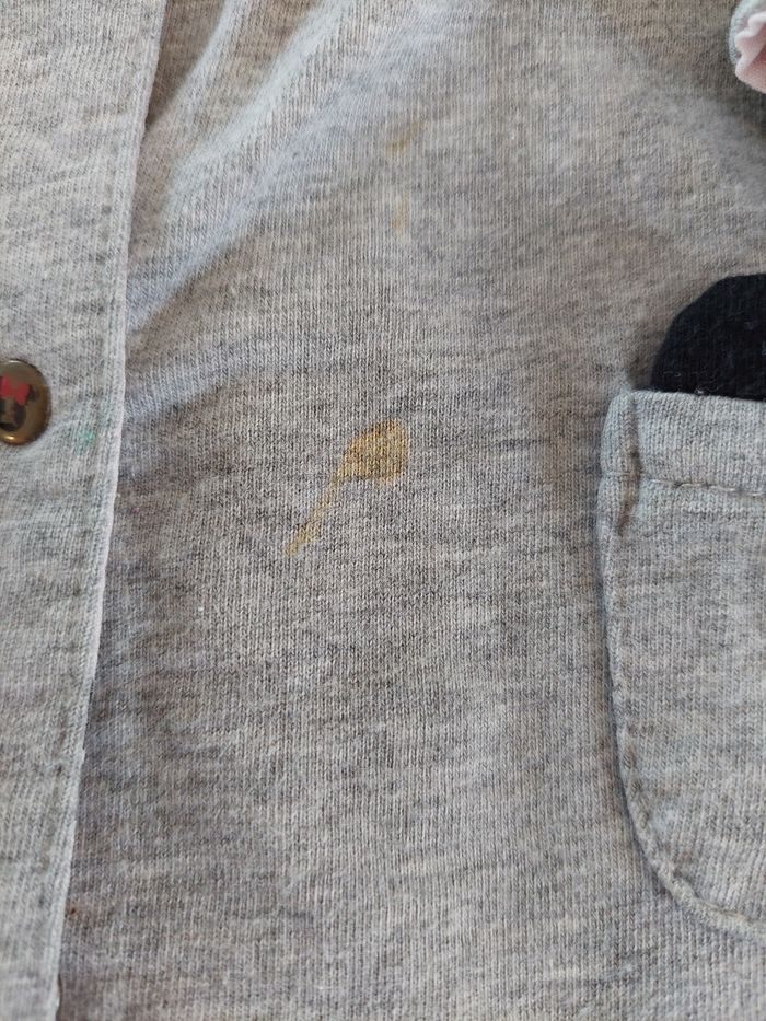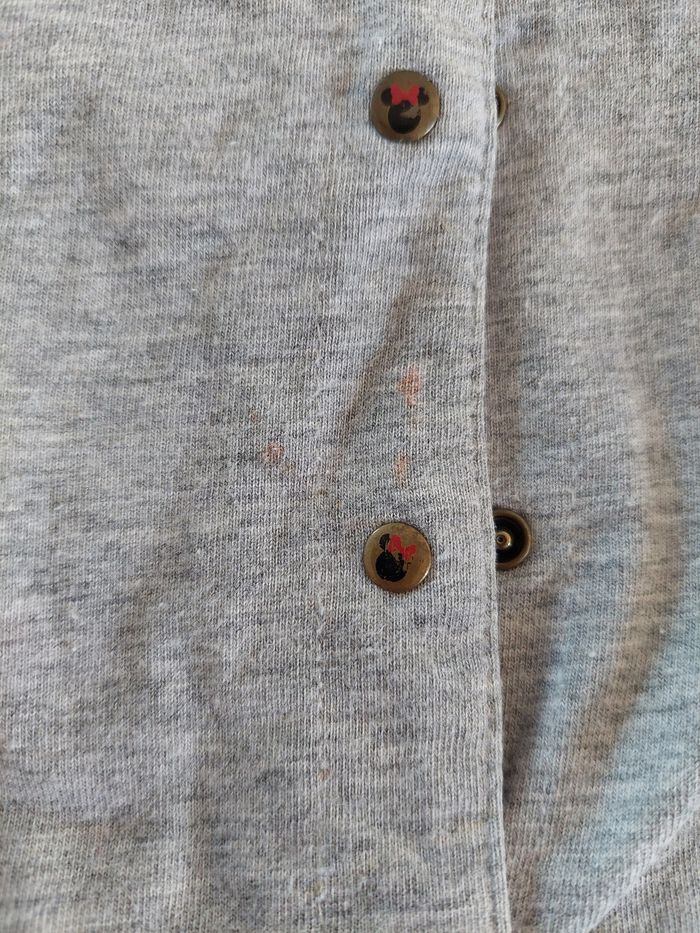 Veste/ gilet à pressions Minnie. 2 petites poches avec les oreilles de Minnie et 1 petit nœud doré. 2 endroits où il y a des tâches (voir photos). Disney, 24 mois #24moisaurelilou34 #2ansaurelilou34