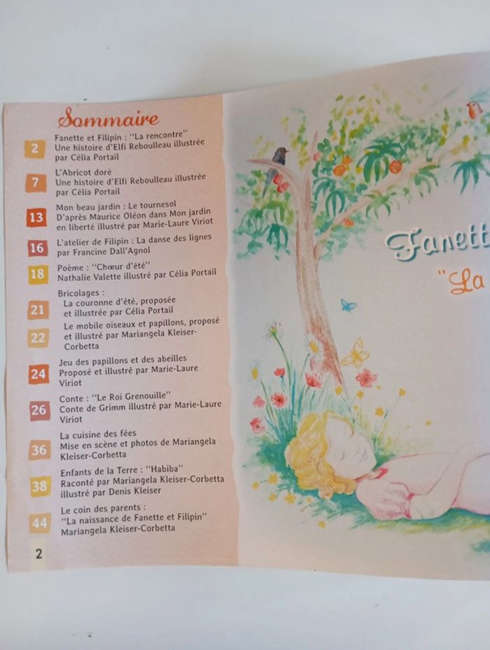 Le journal de Fanette et Filipin est un magazine alternatif drôle et plein de vie pour les enfants de 3 à 10 ans. Au rythme des saisons, il propose des histoires et des activités en lien avec la nature pour partager en famille beaucoup de joie et de créativité. Un magazine pour rêver et s’émerveiller A chaque saison, le journal de Fanette et Filipin propose de belles histoires basées sur des valeurs d’amitié, d’entraide, de confiance et de gratitude qui viennent nourrir l’imaginaire des enfants et ouvrent toutes grandes les portes du rêve. Les illustrations d’une qualité exceptionnelle, entièrement réalisées à la main par des illustratrices de talent, sont pleines de douceur, de couleurs et de poésie, pour rêver et s’émerveiller. Le monde est beau : vivons pleinement les quatre saisons Raconte-moi une histoire Fanette et Filipin : La rencontre Histoire : L'Abricot doré Poème : Ardeurs d'été Conte : Le roi grenouille Enfants de la terre: Habiba Je fais avec mes mains La danse des lignes : les droites La couronne d'été Le mobile Oiseaux et papillons La cuisine des fées Je m'amuse Jeu des papillons et des abeilles Je découvre la nature Mon beau jardin : Le tournesol Le coin des parents La Naissance de Fanette et Filipin 52 pages Dimensions : 23 x 17 cm Livre en très bon état Je vends d'autres livres sur les saisons #phil_peg_saisons #phil_peg_été ou de la même collection #phil_peg_fanettefilipin #nature #été #saison #fanetteetfilipin