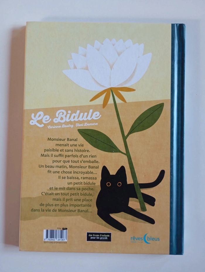 UNE HISTOIRE DRÔLE ET SENSIBLE, OU COMMENT UN SIMPLE BIDULE EN APPARENCE INSIGNIFIANT VA CHANGER LE COURS D'UNE VIE MONOTONE. Rien ne semble pouvoir troubler le cours de la très ordinaire vie de Monsieur Banal, jusqu'au jour où il découvre sur le trottoir un petit bidule. Il l'emporte chez lui et essaie d'en prendre soin du mieux possible. Mais il s'interroge : que peut bien être ce bidule ? Comment s'en occuper correctement ? Il décide alors de se renseigner en interrogeant des spécialistes, puis le petit vieux de son quartier. Le mystérieux bidule va ainsi entraîner le solitaire Monsieur Banal à sortir de sa routine. Mais qu'est-ce au juste que le bidule ? Éditeur ‏ : ‎ ORBESTIER 40 pages Âge de lecture ‏ : ‎ 5 - 8 ans Dimensions ‏ : ‎ 15.3 x 0.8 x 21.7 cm Livre en excellent état #bidule #viemonotone #quotidien
