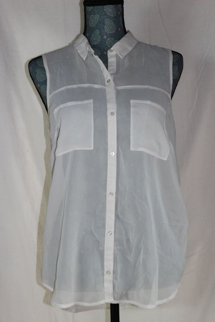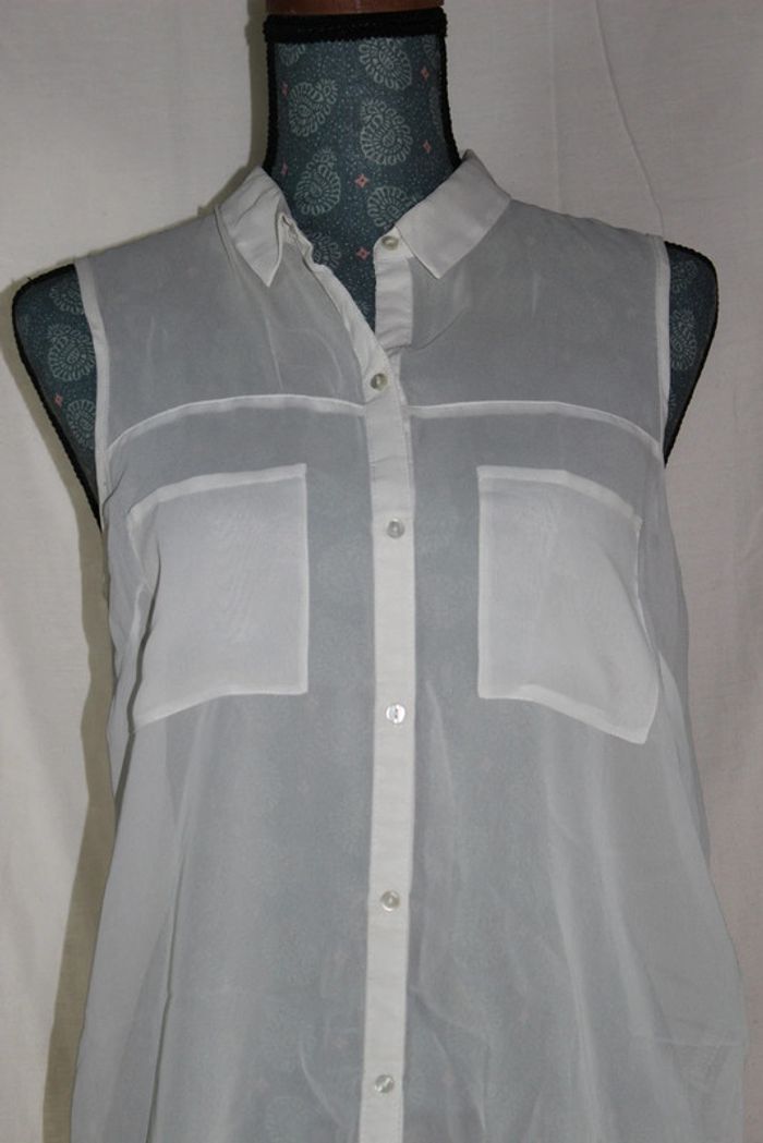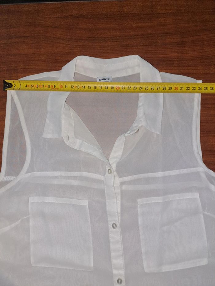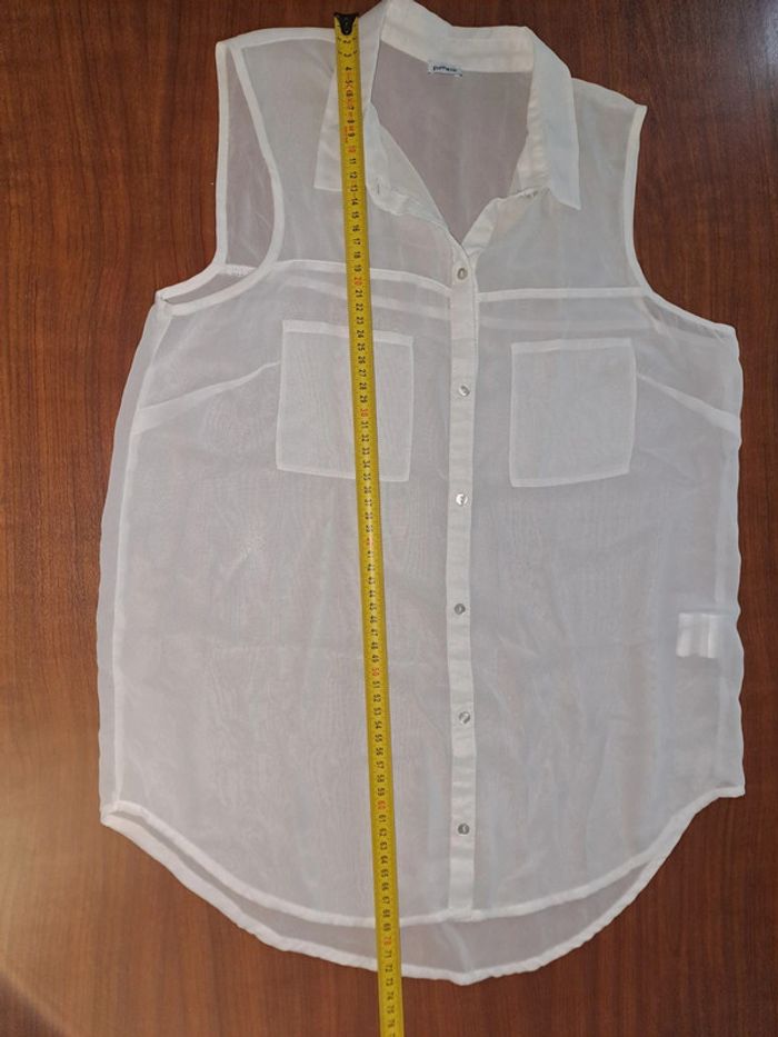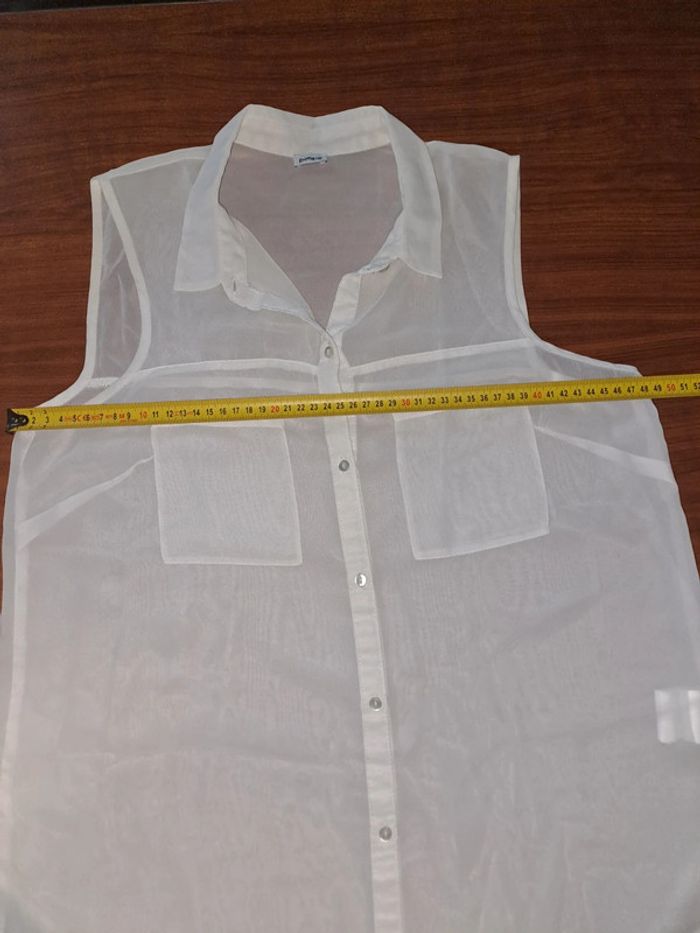 Jolie chemise Sans manches transparente Couleur: blanc Marque: Pimkie Taille M Dimensions sur les dernières photos 100% polyester Portée plusieurs fois #ellena50vêtementsfemmesTM #chemise #pimkie #chemisefemme #chemisesansmanches