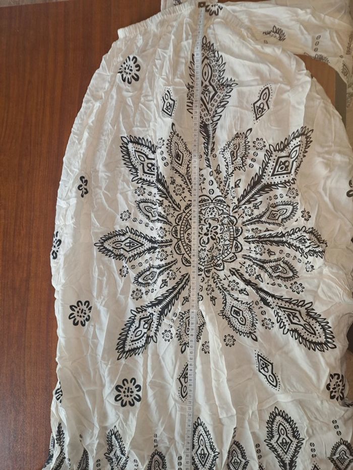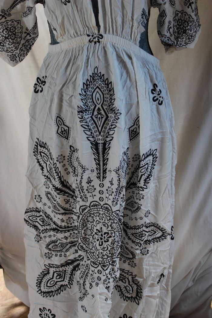 Magnifique robe longue d'été Avec fentes sur les côtés en bas Décolté Transparente Couleurs: noir et blanc/ crème Marque: Asos Taille M Dimensions sur les dernières photos Mini défaut tissu en bas voir 7ème photo Juste lavé 1 fois et porté pour l'essayer #ellena50robesM #ellena50vêtementsfemmesTM #robe #robelongue #asos #asosdesign #robeété #été #laselectionvinted