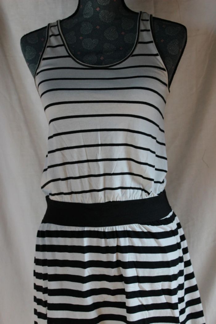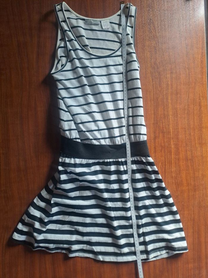 Jolie robe marinière Avec élastique au niveau de la taille Couleurs: noir et blanc Marque: La redoute Taille 162, âge 16 ans Portée plusieurs fois Jauni un peu au niveau du col, voir photo #robe #laredoute #robemariniere #été