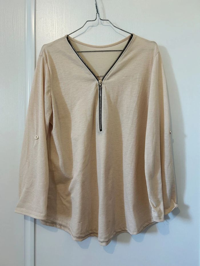 Blouse, chemisier, fluide de couleur beige/rose poudré Col zippé avec fermeture éclair Taille 38/40 Zara