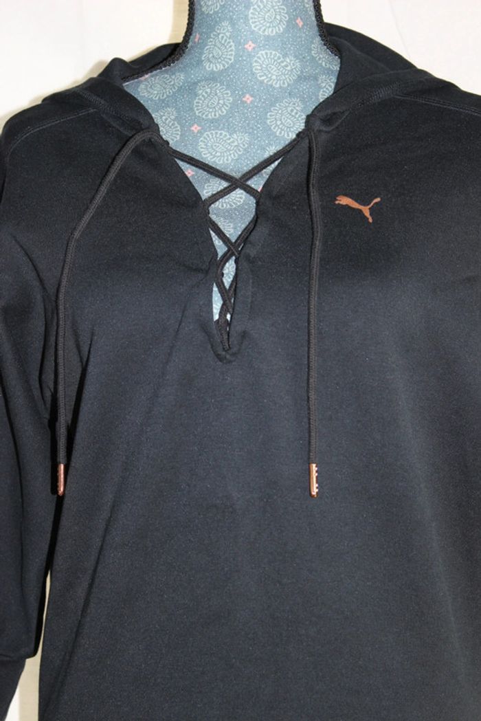 Magnifique weat-shirt Avec capuche Manches 3/4 Couleurs: noir et rose gold Marque: Puma Taille M Dimensions sur les dernières photos Porter plusieurs fois #ellena50vêtementsfemmesTM #puma #sweat