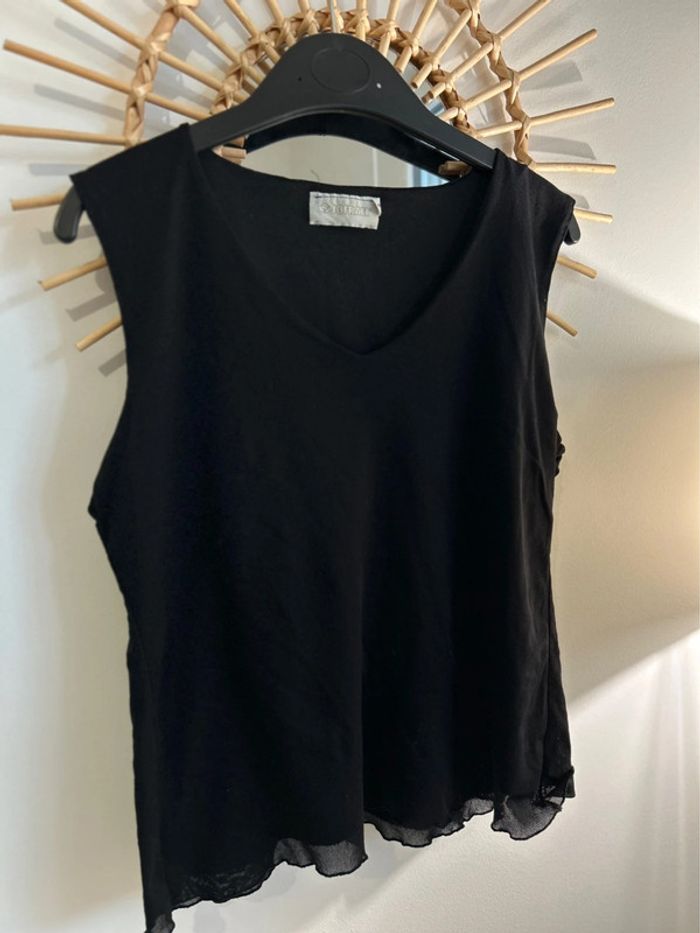 Débardeur doublé avec matière voile, tulle sur le devant Col V Taille M Pièce Vintage Très bon état