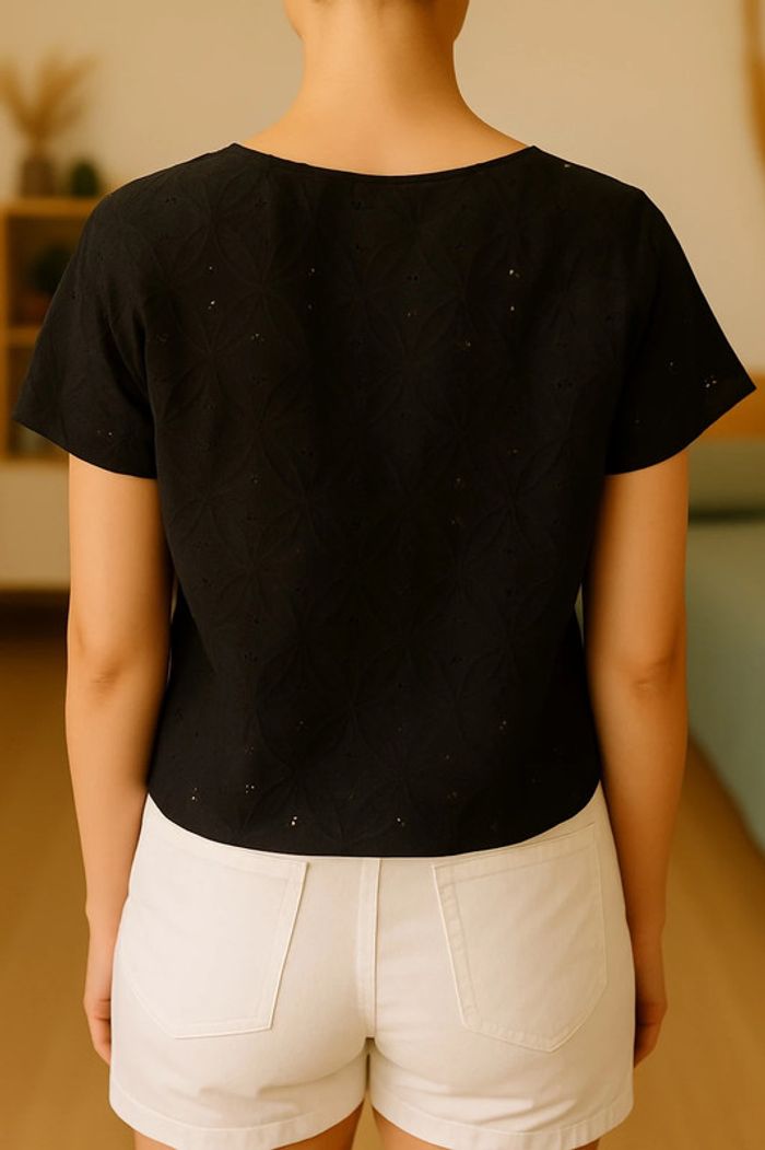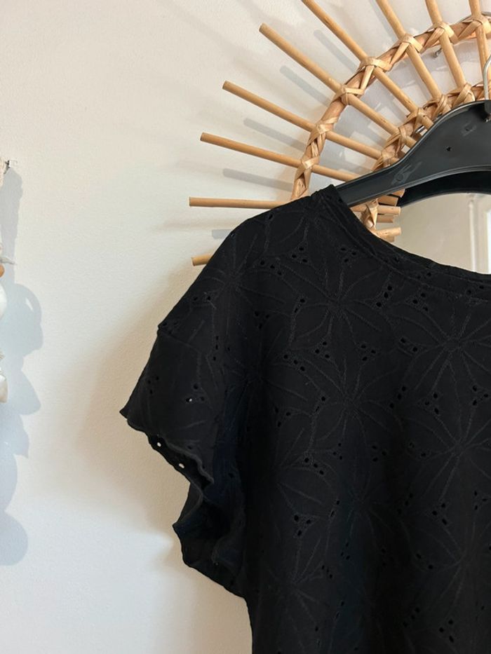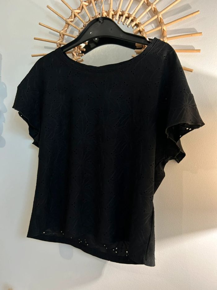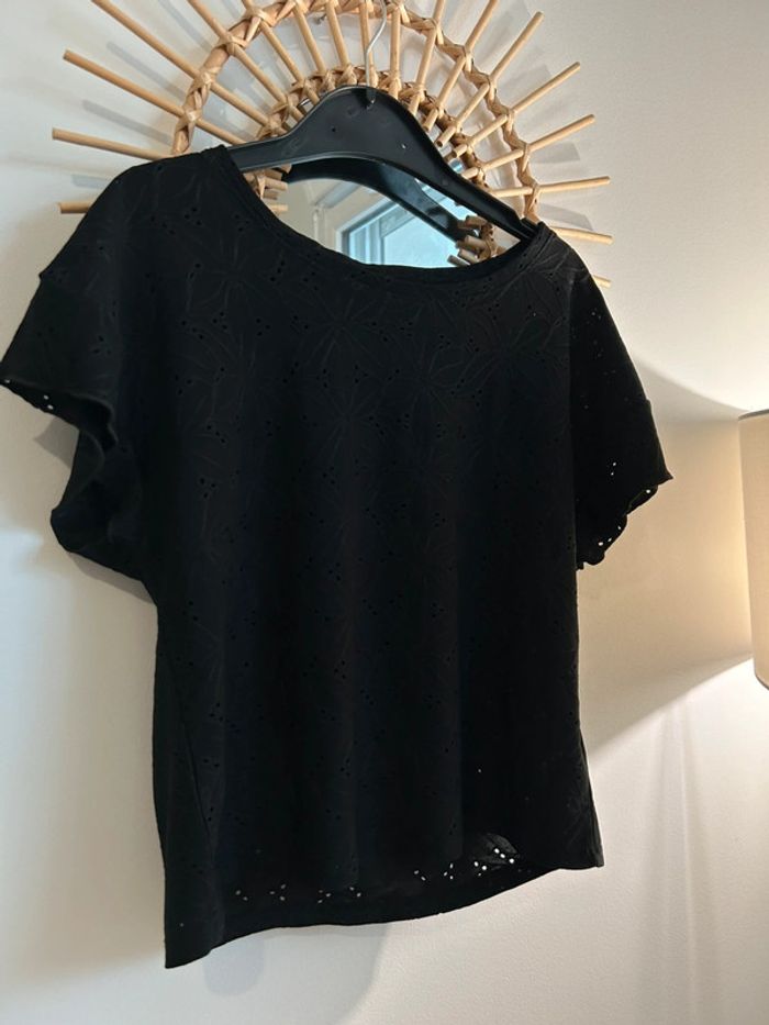 Joli teeshirt à manches courtes en broderies, dentelle, ajouré Porté 1 fois, état neuf Mango Taille XS