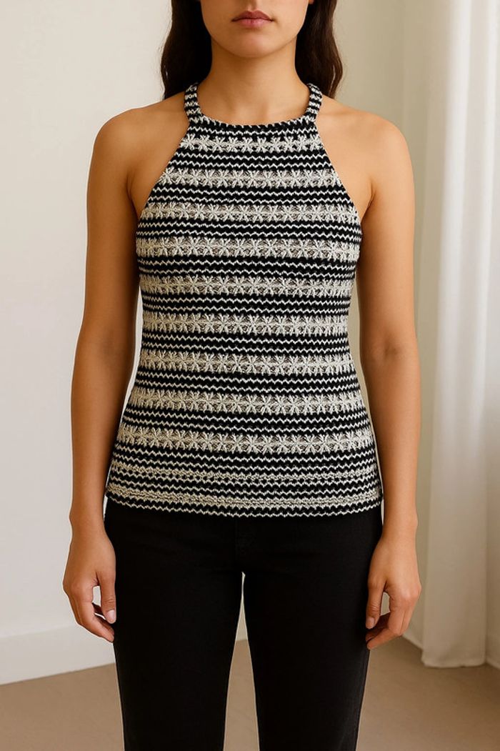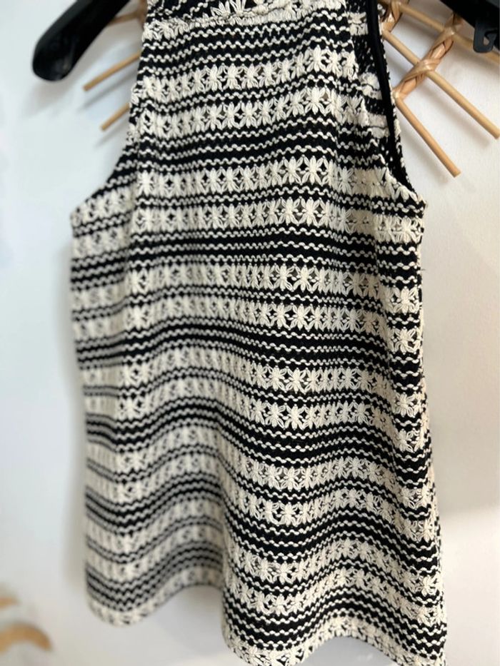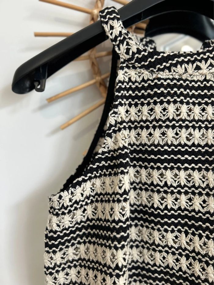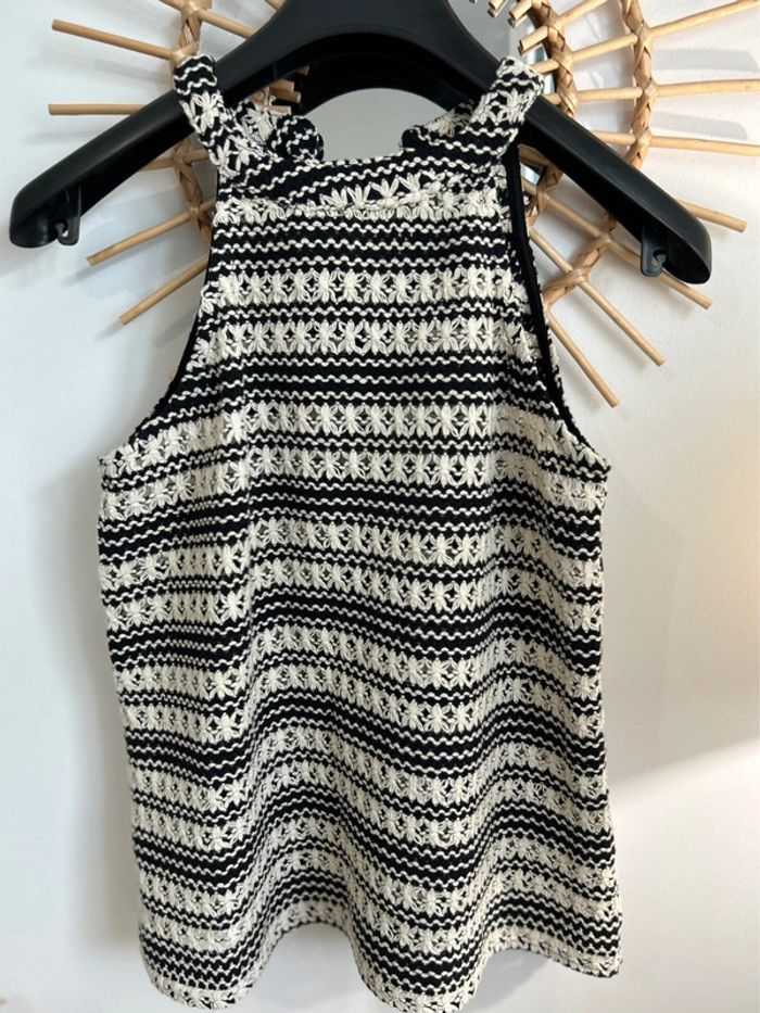 Top sans manches en matière maille, crochet Dos légèrement nu Broderies en forme de fleurs Tout neuf, étiquette coupée après l’achat Taille S Mango