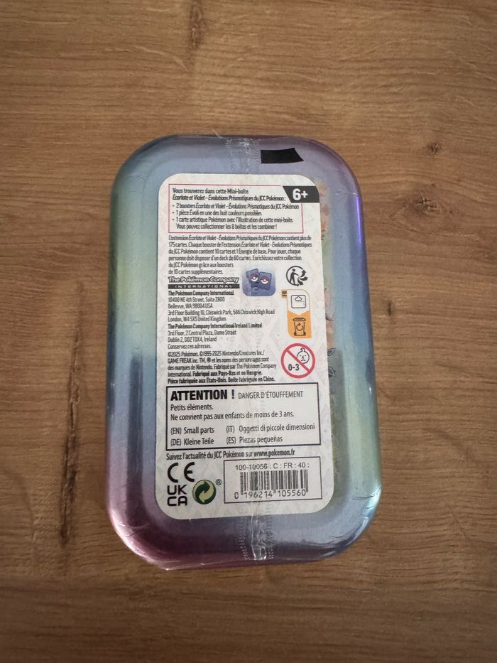 Mini tin Mentali Évolution prismatique 8.5 scellé . État : 10/10 (Neuve). Envoi rapide et soigné. L’envoi sera filmé de la préparation jusqu’au dépôt pour éviter les achats frauduleux. Pour toutes autres informations, n’hésitez pas à me contacter.