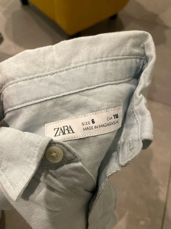 Vend chemise bleu ciel zara taille 6 ans en coton et lin très bon état