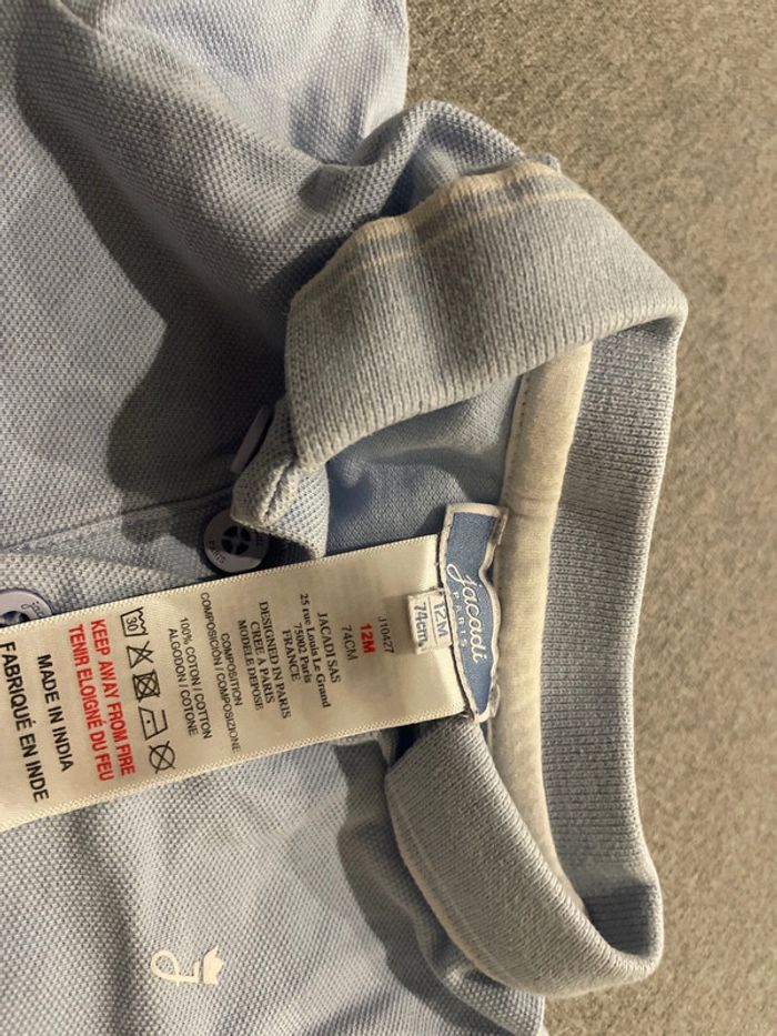 Vend polo jacadi bleu ciel taille 12 mois tres bon état