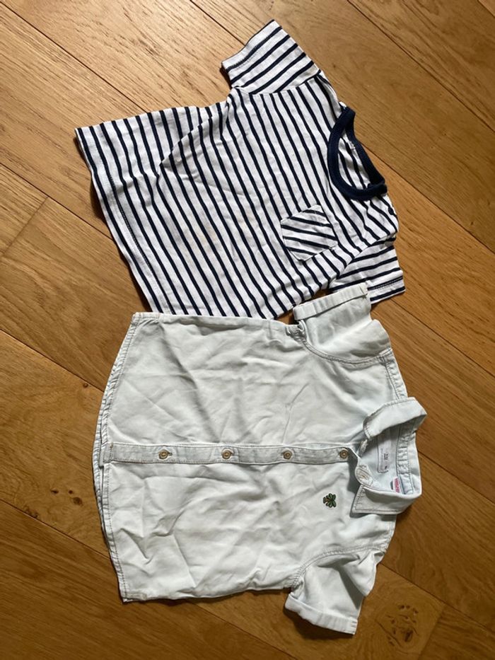 Vend lot une chemise zara taille 9-12 mois et un tee shirt taille 80 cm tres bon état