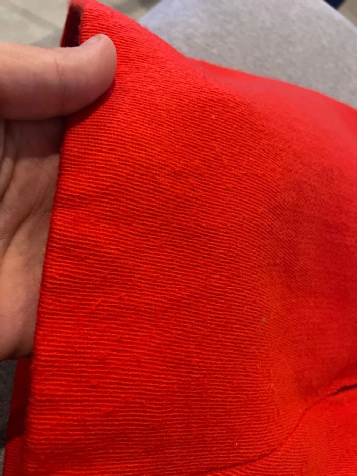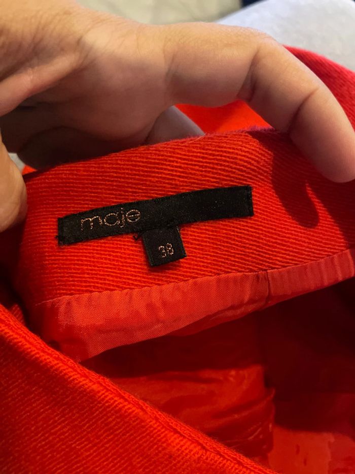 Vend jupe courte maje en laine rouge taille 38 très bon etat général juste quelques très légère bouloche voir photo
