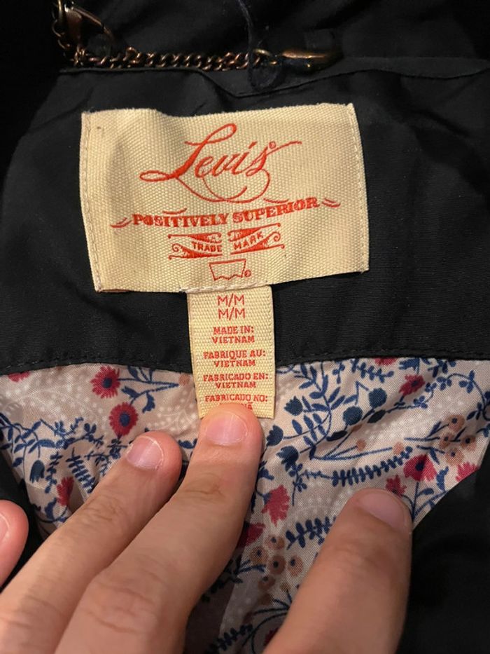 Vend manteau Levi’s noir taille M très bon état général juste le derriere d’une des manches est abimés voir photo