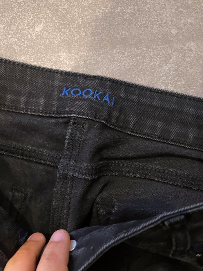 Vend jean noir kookai taille 38 bon état général juste petite trace d’usure au genou voir photo