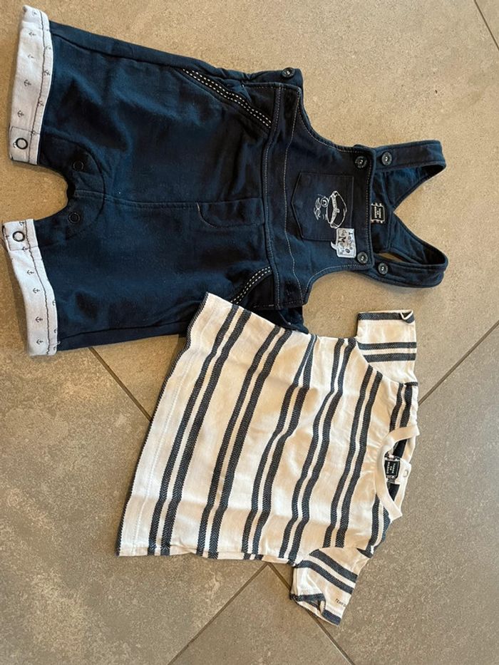 Vend ensemble salopette short avec tee-shirts taille 9 mois tres bon état