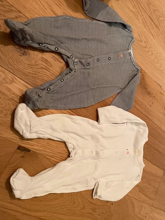 vend pyjama hema en coton taille 50 cm bon état général juste le pyjama blanc à une petite tache au niveau du haut voir photos