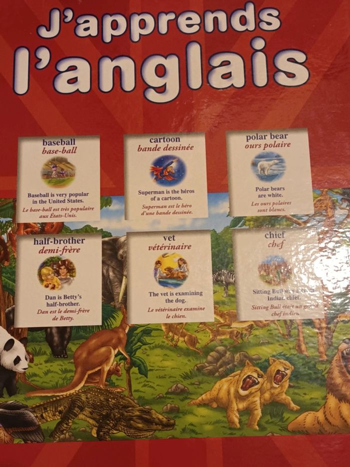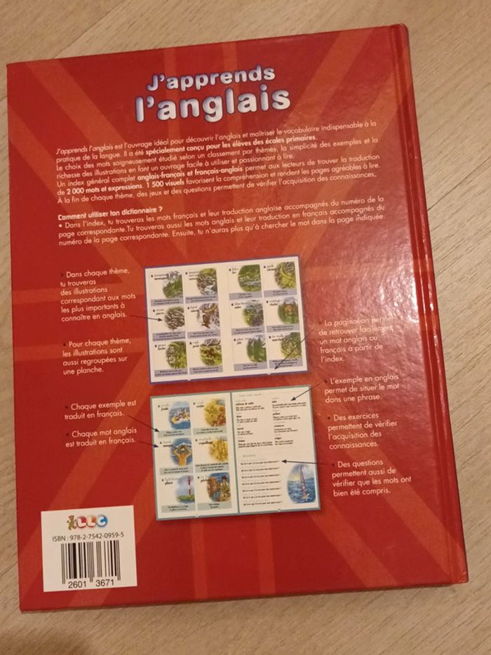 Livre "j'apprends l'anglais" pour enfant Entièrement écrit par des enseignants Ouvrage idéal pour découvrir l'anglais et maîtriser le vocabulaire indispensable à la pratique de la langue. Un index anglais-français et français-anglais permet aux lecteurs de trouver la traduction de 2 000 mots et expressions. Spécialement conçu pour les élèves de primaires. Tbe Couverture et pages intactes Merci de privilégier l'envoi par mondial relay svp #benedicte92_livres