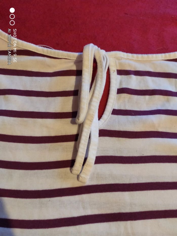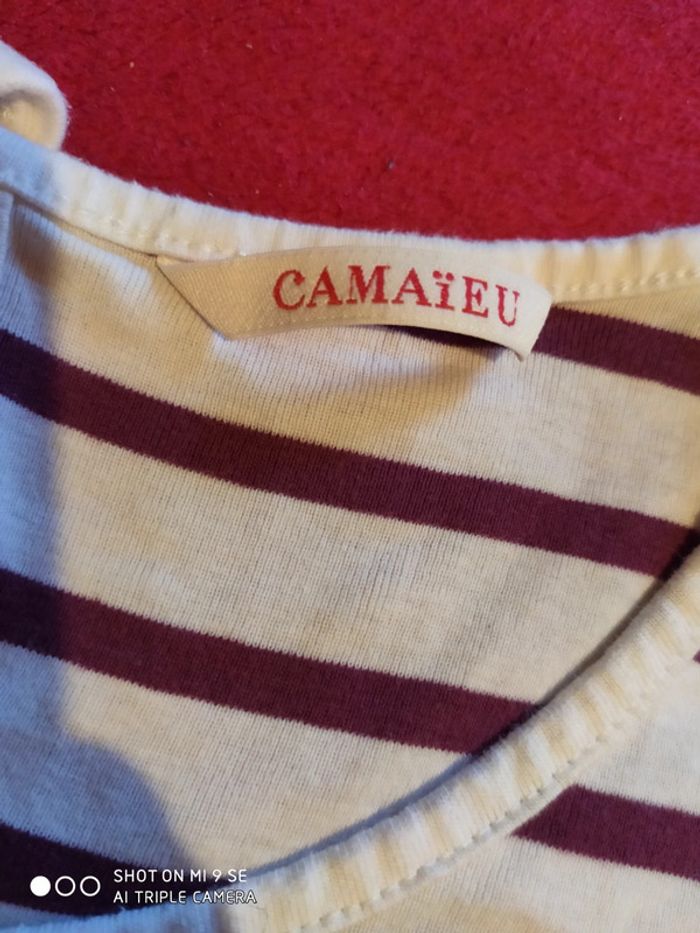 T-shirt long manches 3/4 pour femme Bon état général juste 1 trace et 1 petit trou le tout dans le dos au niveau du nœud Plus d'étiquette mais correspond à un 38/40 Camaïeu Merci de privilégier l'envoi par mondial Relay ou Chronopost svp #benedicte92_femme