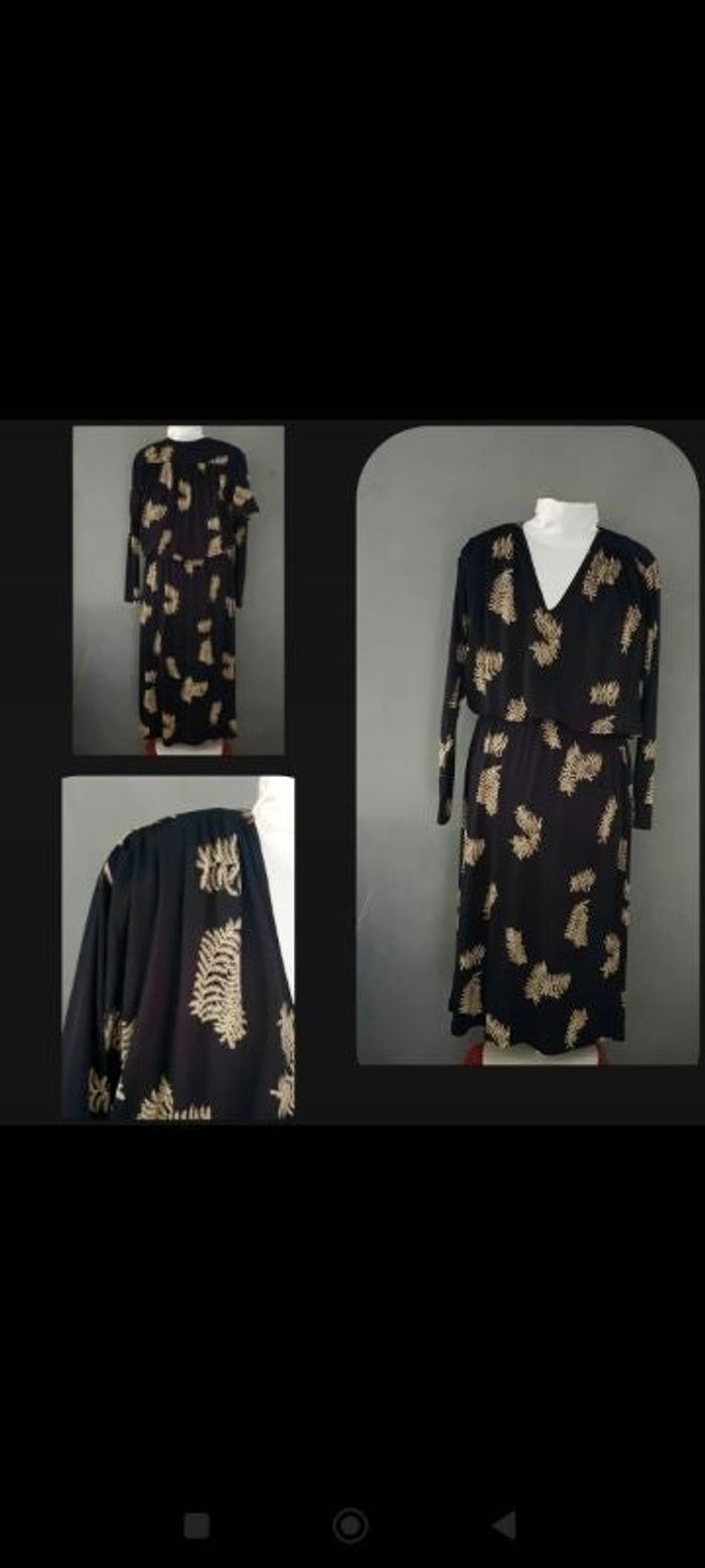 Jolie robe fluide mi saison peu porté merci de bien vérifier vos mensurations pas d étiquette de taille 🤗 très belle qualité made in France et motif chic pièce rare
