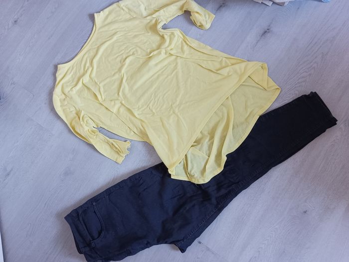 Le lot Taille 48 se compose de : - 1 débardeur - 1 jean noir - 1 pantalon noir - 4 robes - 1 robe tunique - 1 pull - 1 tunique - 1 veste - 2 gilets long - 1 ceinture Et je rajoute 1 chemise noire et blanche MS&Mode qui présente quelques petits accros (dernière photo) Le tout en Be et Tbe Avec différentes marques Ms&Mode, Asos, Zara,...