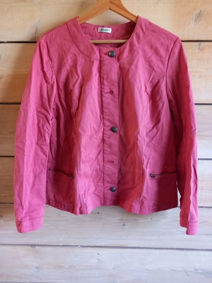 Veste couleur terracotta (le rose est moins vif que la photo) Boutons aspect vieilli Poches zippées taille Non doublée Taille 44/46 Damart