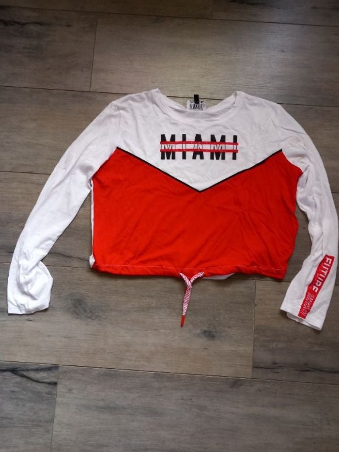 Tee-shirt blanc et rouge Lien pour serrer bas tee-shirt Largeur 55 cm Longueur 48 cm Taille M Jennyfer