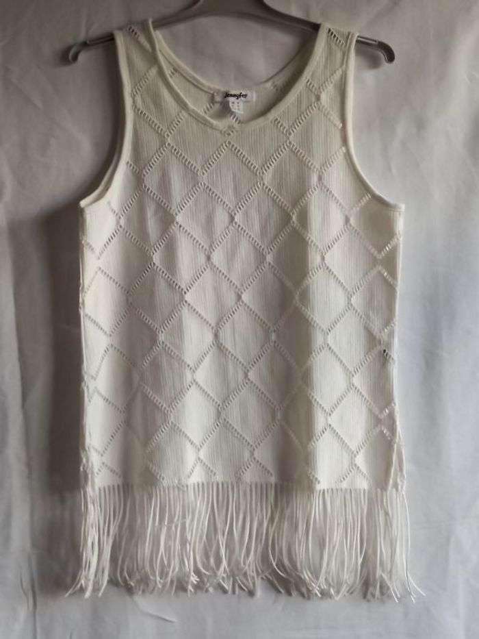 Tee-shirt femme écru type débardeur Motifs géométriques ajourés Tee-shirt fini par une frange au niveau de la taille Non doublé Polyester et élastane Taille S Jennyfer