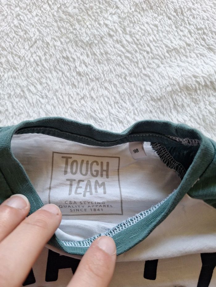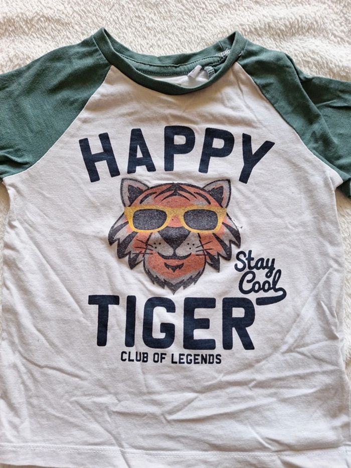 Tee-shirt manches courtes Taille 98 cm Couleur blanc et vert Tête de tigre Happy tiger Club of legends Stay cool Marque C&A Tough team Tres bon état #3ans #3ansgarcon #garcon3ans #pingpong1994_3ans #pingpong1994_36mois