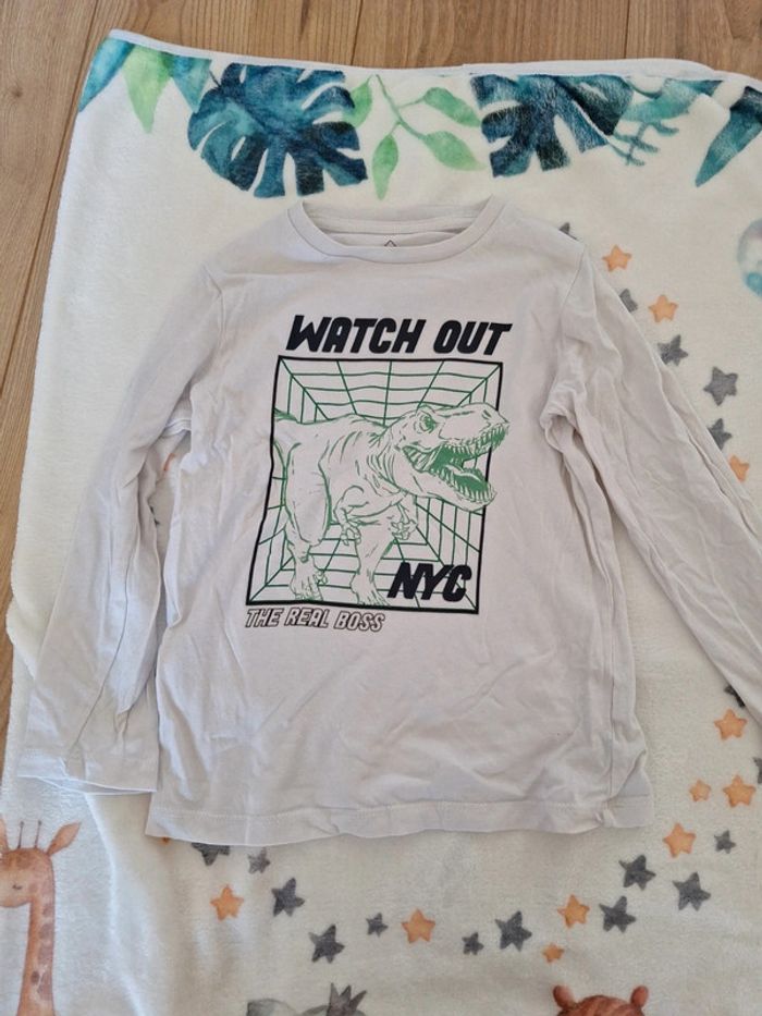 Tee-shirt manches longues Taille 3 - 4 ans Couleur blanc Dinosaure Watch out NYC The real boss Tyrannosaurus rex Marque Tex Tres bon état #3ans #3ansgarcon #garcon3ans #4ans #4ansgarcon #garcon4ans #pingpong1994_3ans #pingpong1994_4ans #pingpong1994_36mois